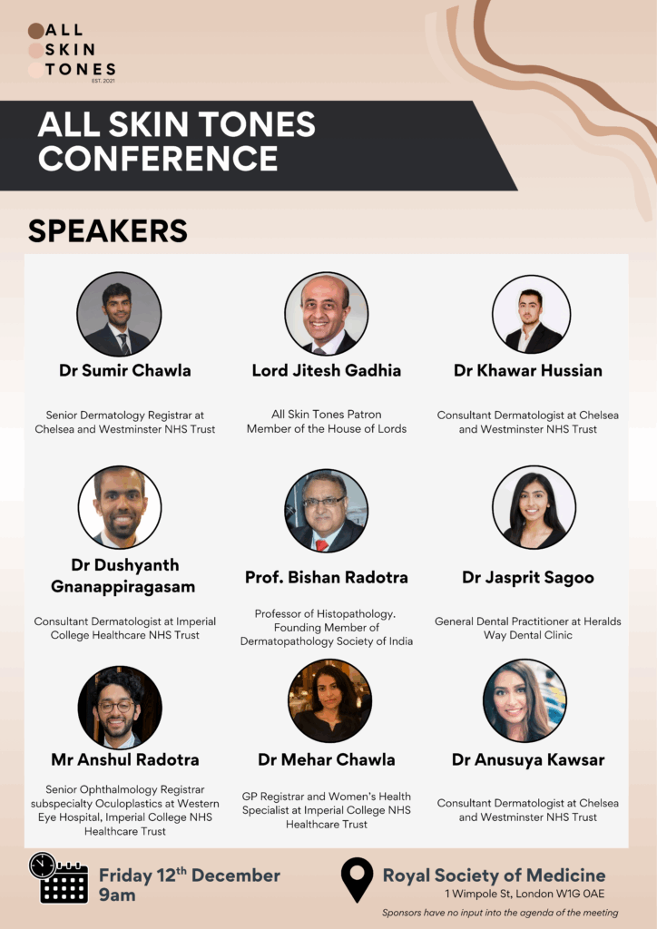 We are delighted to invite you to the All Skin Tones Conference at the Royal Society of Medicine — a free, one-day multidisciplinary event focused on recognising and managing dermatological conditions in people with skin of colour.